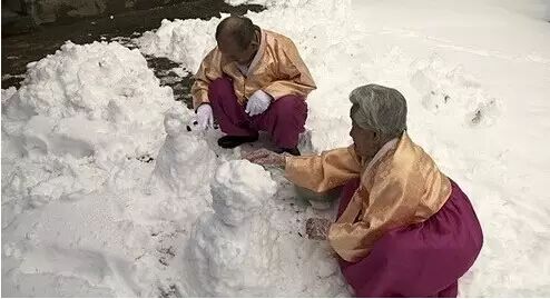 下雪的时候,爷爷都会给奶奶堆雪人...奶奶说:“听说吃初雪耳朵会听得更清楚”,爷爷吃了几口说道:“我能听到山那边的声音了。”