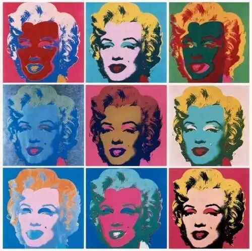 1962年8月,玛丽莲•梦露去世,此后几个月内,安迪•沃霍尔制作了23幅梦露的绢印版画。这些作品,日后也成为安迪•沃霍尔最有代表性的作品之一。其中,作为双联画的作品Marilyn Diptychy,彩色版和黑白版并列,是不言自喻的生死对照。