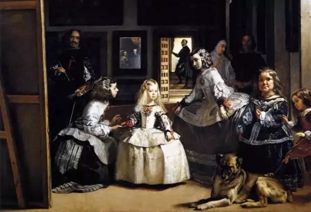 后来人用X光照射这幅作品时发现,《宫娥》一开始并非是我们所看到的这个样子。比如画中的玛格丽塔公主左手上原本有一枚象征王权的戒指,后来被画家抹去。委拉兹凯兹作此画时,菲利普四世膝下无男嗣,只好让玛格丽塔公主充当王室继承人。而几年以后,奇迹般地有了小王子的出生,戒指再戴在玛格丽塔手上显然不合时宜。