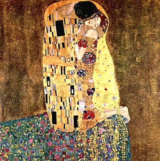 表面上,画面中相互拥抱的两人,被掩埋在拜占庭风格的镶嵌花纹中。但细看后,又能窥见情欲的暗示:黑色长方形是男性生殖器的符号,五颜六色的椭圆形则是女性生殖器的符号。经由X光透视,在克林姆特的作品中,几乎所有人物都先详细描绘出生殖器官,然后再画上衣服,绚丽的装饰下藏匿着生殖器官的隐喻。