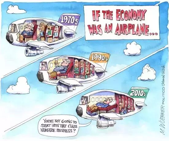 无论空中还是陆地,富人都越来越富,人们被越来越无情地推到了高低有别的等级层次中:有人坐在商务舱、头等舱里;有人坐着所谓的“Premier Economy”(优越经济舱);有人坐在逃生出口那一排;有人可以第一批、第二批、第三批登机;有的人则要被塞到中间的座位。有的人对此愤愤不平,说出一些话、写下一些文字来表达不满;但更多的人则是选择无视这种分类,心甘情愿地陷入一个又一个的圈套与怪圈。