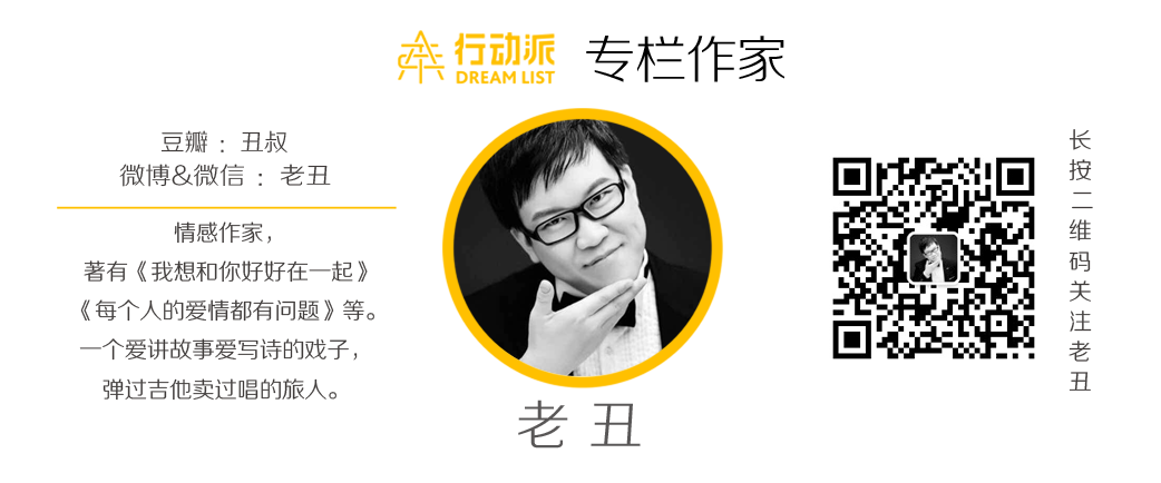 老丑,情感作家,著有《我想和你好好在一起》《每个人的爱情都有问题》等。一个爱讲故事爱写诗的戏子,弹过吉他卖过唱的旅人。喜欢的读者可关注作者豆瓣:丑叔 ;作者微信:weixinlaochou。