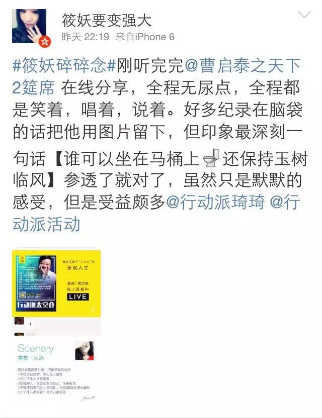 行动派太空仓上一期邀请的著名主持人曹启泰先生带来的即兴脱口秀,场面空前火爆,听众的热情就像一把火,燃烧了整个沙漠~~