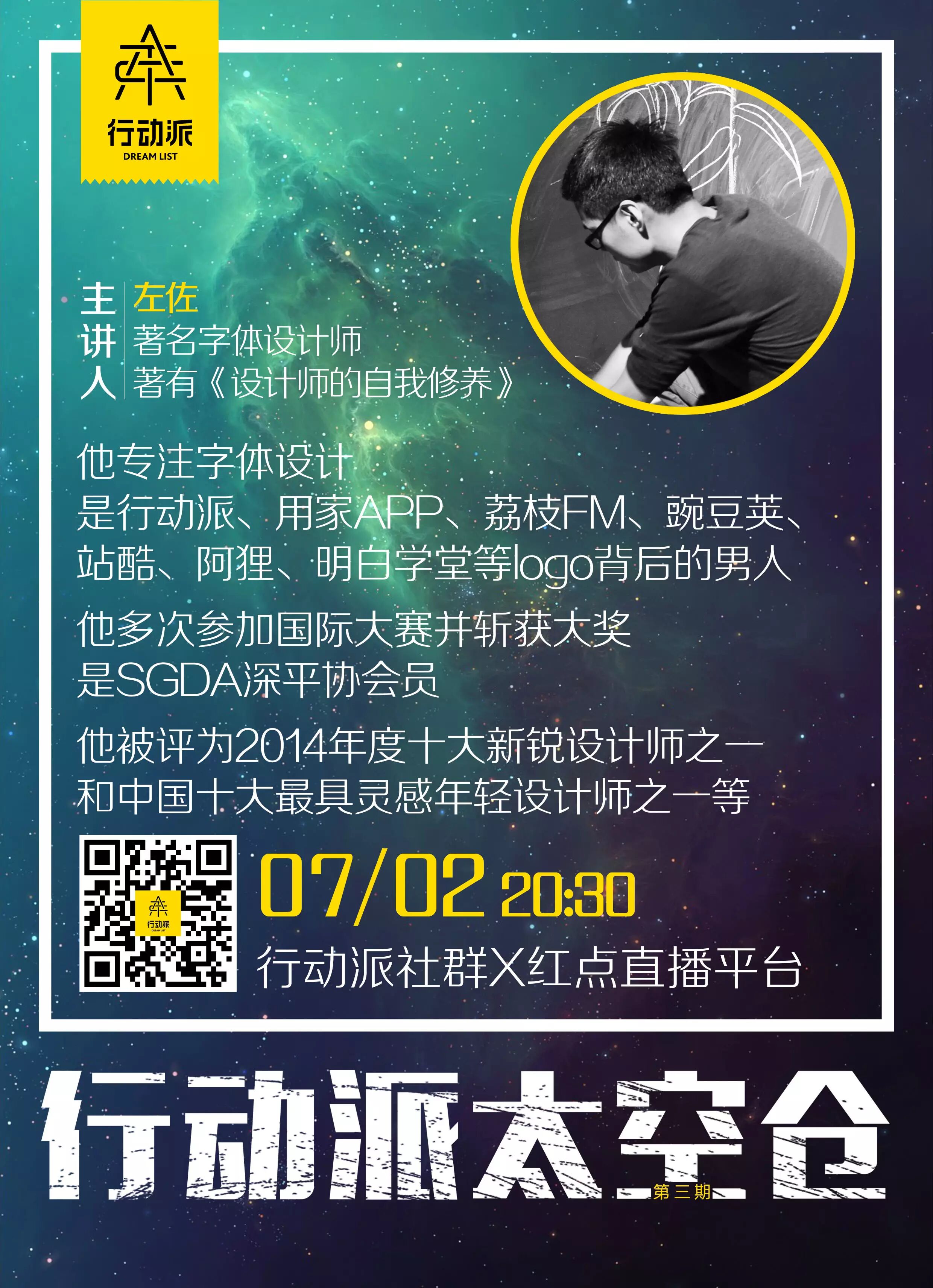 这一期的线上分享会——行动派太空仓邀请到了一位专注字体设计五百年的非(常)著名的设计师 左佐!首先介绍下本期的嘉宾,也许你不认识他,但你一定用过他设计的作品!