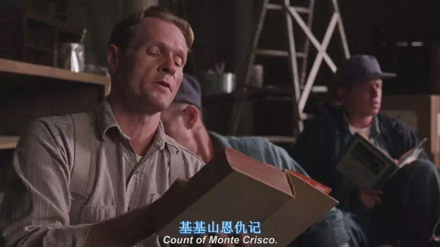 作为给典狱长干洗钱黑活所获得的回馈“恩典”,他不是为自己索要什么,而是要求给政府写信,请求政府组织捐赠旧书,在监狱里建一个图书馆,帮狱友兄弟们提升文化知识。在一封封信石沉大海后他继续写信寄信。终于有一天,他的傻逼式的坚持获得了回报。一大批书运进监狱了。图书馆得以建立。
