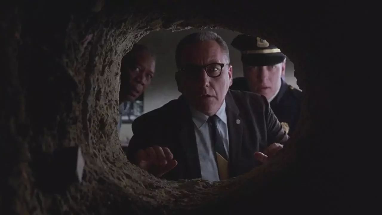 这个电影讲述的故事是,ANDY这个银行家,被“没卵的讼棍”和僵硬的司法体系错判为杀死妻子的凶手,被送进了监狱,服无期徒刑,他花了20年的时间,在监狱的墙上挖了条地道,成功实现越狱。