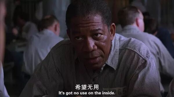 作为铁杆哥们,比ANDY年长不久、牢龄也长不久的RED,就屡次苦口婆心,劝他做人要现实点,希望无用,有希望很危险,不要像个傻逼一样。