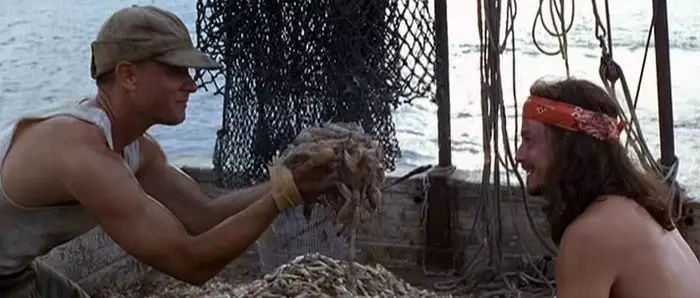 而且,就在此时,他的截了肢的部队长官也找到他,来到他的船上,担当他的大副——在医院养病时,他曾嘲笑阿甘:“你要是当了捕虾船老板,我就来当你的大副!”此刻,这个自暴自弃的军官,不仅是为了践行他的“诺言”而来,更是从阿甘这样一个傻子身上汲取力量,重新找到了生活下去的信心。