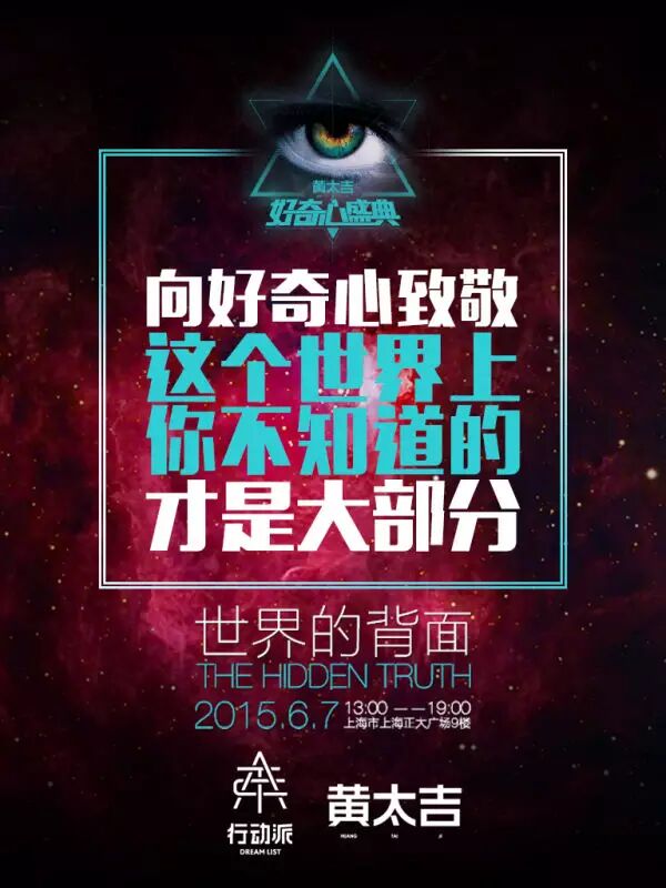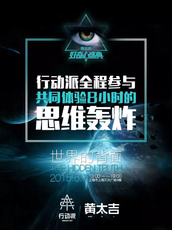 好奇心盛典,行动派将与你在魔都上海共同体验6小时无尿点的思维信息轰炸,挖掘自身与世界无底洞的联系。