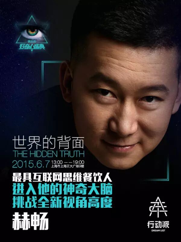 好奇心盛典,一年一次的机会,黄太吉创始人赫畅带你酣畅淋漓的感知世界的背面,洞悉变化的不同思维方式,唤醒并满足你对这个世界饥渴已久的好奇心。