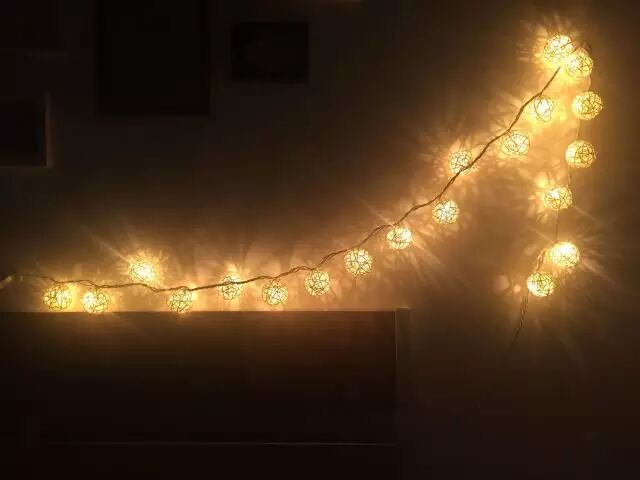 “这是客厅的一部分景,像小星星一样的灯,是在网上买的圣诞灯,42块加上邮费,选暖黄色整个屋子都温馨得不得了。30米简直可以屋子绕到阳台都没问题。”