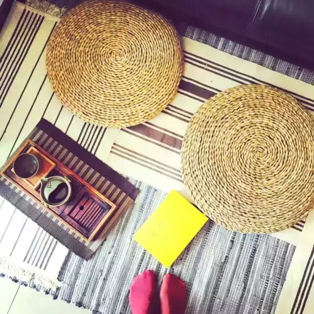 另外,蒲团是地毯上最好的伴侣:坐垫、餐盘、电脑架、靠背、猫窝等等功能一键胜任,淘宝上50两个包邮。