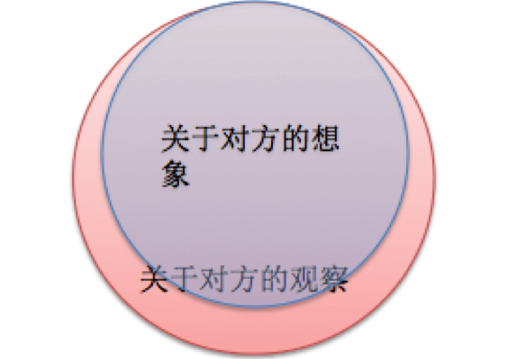 观察和想象大多重叠的,这代表他了解的你和观察到的你大多一致,但是有一部分偏离。