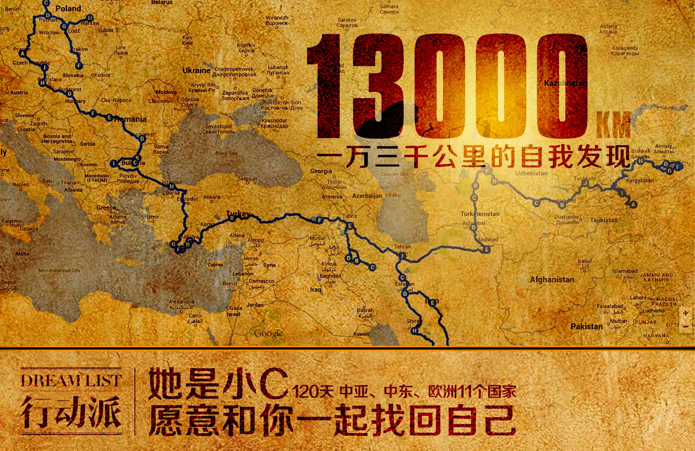 2014年九月从新疆喀什出发,120天,带着一把ukulele,经吉尔吉斯斯坦、乌兹别克斯坦、土库曼斯坦、伊朗、土耳其、保加利亚、罗马尼亚、匈牙利、奥地利、捷克,从中亚到中东,再到欧洲——11个国家,陆路穿越13000公里后抵达波兰华沙,全程以影像记录短片形式呈现。