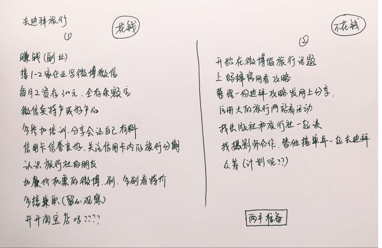 很多朋友在看了微博上#梦想清单#的话题,以及身边诸多朋友的分享后,都纷纷在问要怎么制定梦想清单?网上也有各种五花八门的方法和步骤,比如在写之前要先问自己N个问题,或是用各种图表和测试题,对我而言这些方法都太复杂了,实际上我写梦想清单的过程非常简单。以下是我自己实践了三年的方法,针对初次写梦想清单的朋友,在此和大家分享。运用熟练以后,每年一个简单的Word文档或是直接在脑海中生成清单都是可以的。