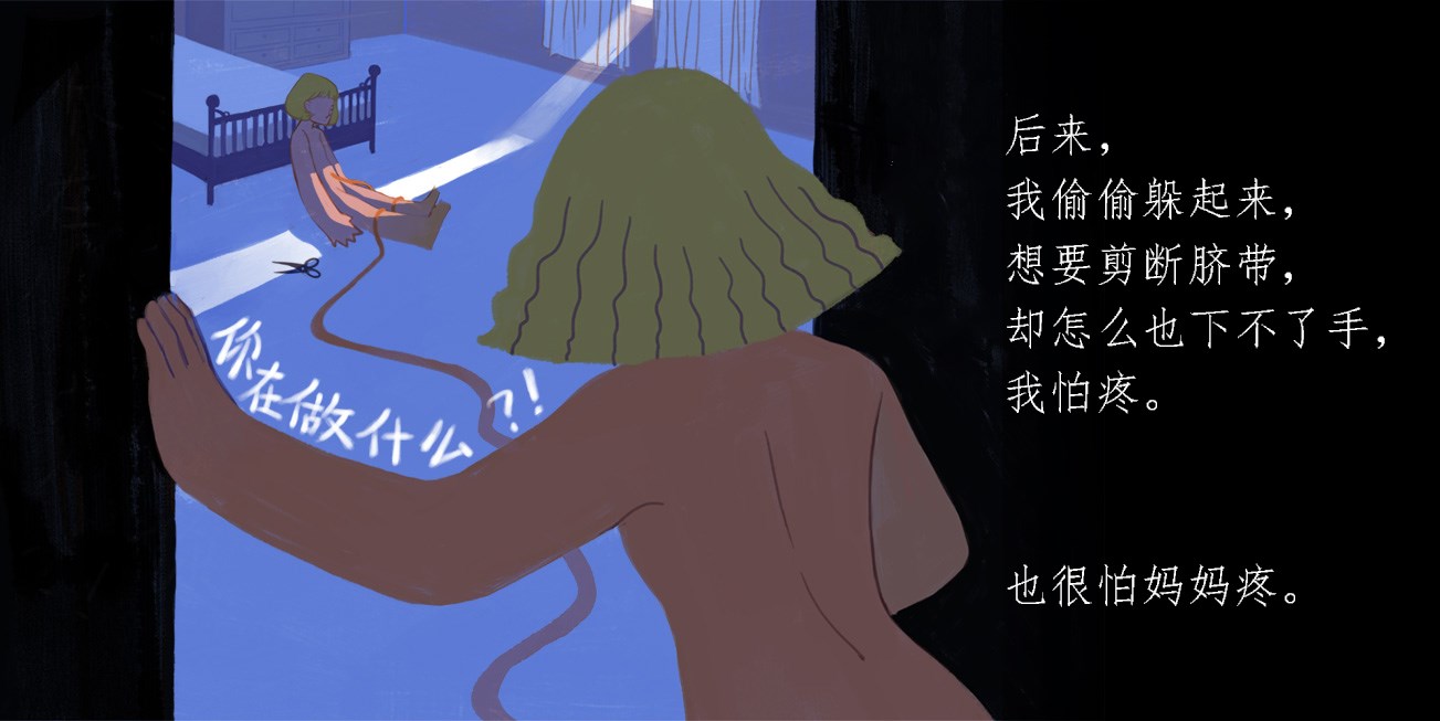 本期作品《脐带》由插画师僵僵授权行动派DreamList平台发布,转载可于微博骚扰僵僵本人“@人畺”征得同意哦!也可以后台私信行动君,长得好看的就偷偷告诉你僵僵的联系方式,哈哈!