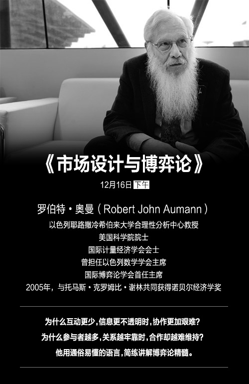 楼上的这个有点像圣诞来人的老爷爷,看第一眼以为他叫“萝卜奥特曼”,其实是大有来头的诺贝尔经济学家罗伯特奥曼!12月16日,他第一次登上了颠覆式创新研习社的讲台,用最通俗的语言让你听懂博弈论~现放送热腾腾的现场笔记!