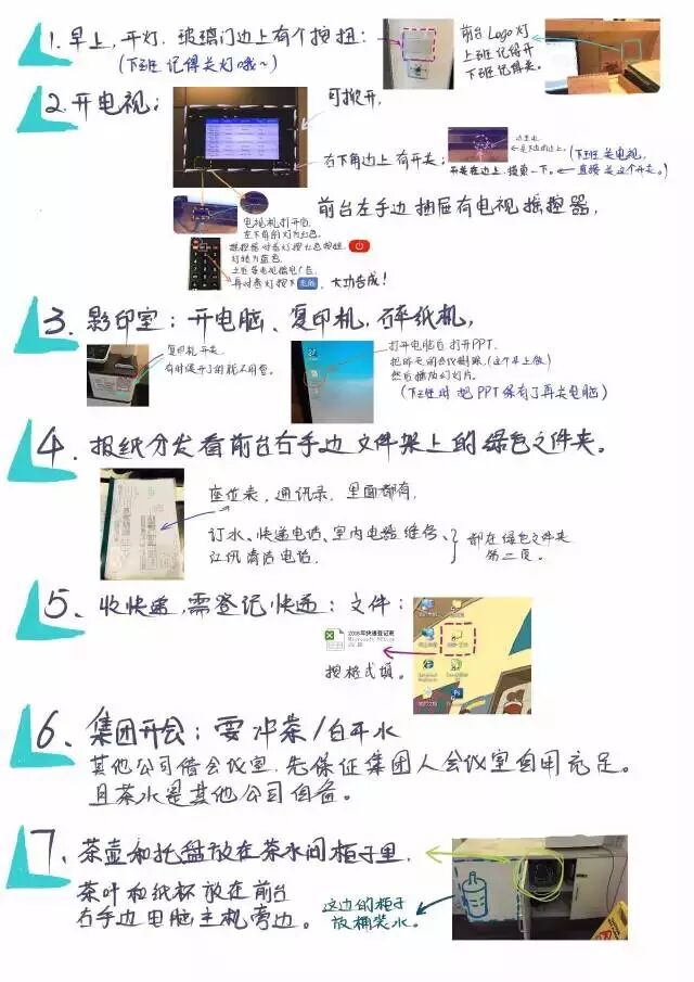 某天她临时有事,他人接替,拿着一张单子在设置电视。我凑了过去,是一幅手绘的操作指引。奥!前一天路过看着她在画什么,原来是这个!