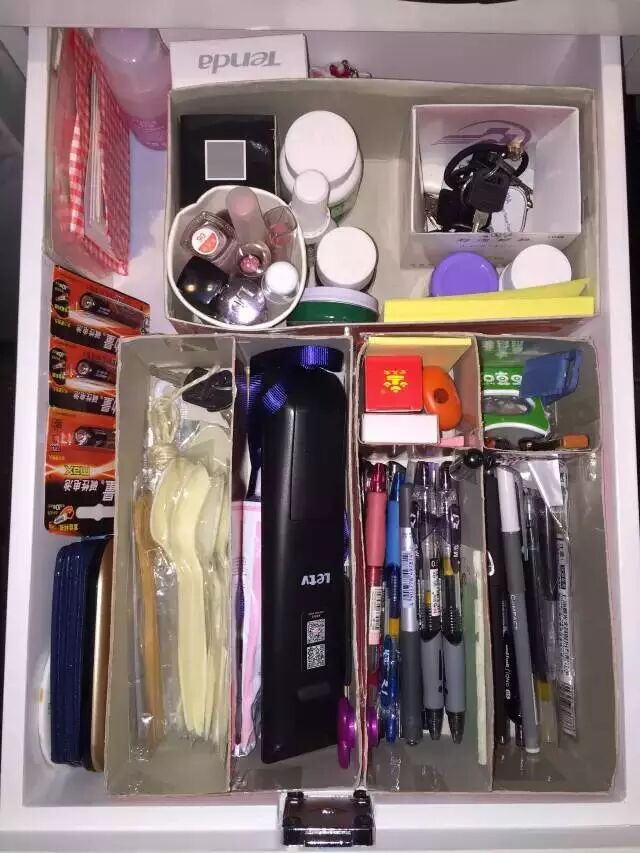 这还没完。另一天路过去借笔,她打开抽屉,哇!“井井有条”是最恰如其分的描述!