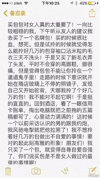 这是论为什么买包可以让我们成为更加自尊自爱自强的社会主义新女性。可是你的包是什么馅的呢?这个也很重要。有的人拿着几万块钱的包,一打开包里面乱七八糟,耳机线和笔缠在一起,擦过口红的纸巾也在包里,各种名片会员卡散落在包底……细节决定品味。从前做【们】杂志的时候,做过这样一个活动,拍摄里包里的物件,当时有两个男生的包很是让人惊艳,当然如今这样的男人也是越来越多的。
