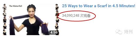 不仅“秀腿”有术,她在著名视频网站YouTube上的时尚教程,单一部“4.5分钟内学会25种围巾系法”,点击就高达3千4百万次!